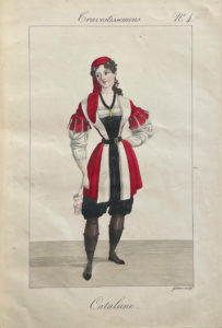 L'exemplaire comprend aussi un plat supérieur de couverture titré Collection de travestissemens de toutes les nations, pour Dames, et daté Paris, 1832. Cette couverture, inconnue des bibliographes, est peut-être factice.