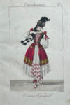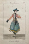 [Paris, vers 1827]. In-folio, demi-chagrin vert avec coins, dos lisse orné, tranches mouchetées (Reliure du XIXe siècle).Très rare suite complète de 22 planches gravées en brillant coloris de l'époque, représentant divers costumes et déguisements féminins : costume espagnol, costume basque, Irlandaise, Catalane, Béarnaise, Domino, Magicienne, Allemande, Basquaise, etc.