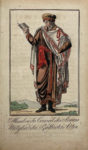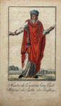 Paris, Deroy, s.d. [vers 1796]. In-8, cartonnage de papier à la colle bleu, dos lisse, tranches mouchetées, boîte moderne (Reliure de l'époque).Édition bilingue franco-allemande peu commune, ornée d'un titre-frontispice et de 15 figures hors texte de costumes officiels, le tout colorié à l'époque. Ces gravures sont des copies des planches de Grasset de Saint-Sauveur qui illustrent l'édition française.