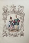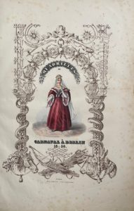 Berlin et Londres, A. Asher, 1836. Grand in-folio, bradel cartonnage orangé, non rogné, premier plat de couverture (Reliure du XIXe siècle).Très rare suite complète d'un titre illustré et de 19 lithographies aquarellés et gommés représentant des costumes de carnaval prussiens.