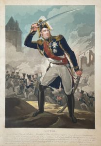Paris, Jean fils & Charon, s.d. [vers 1820]. In-folio, monté sur onglets, demi-basane bleue, titre Album doré sur le premier plat, dos lisse orné (Reliure de l'époque).Très rare suite de 14 portraits en pied de généraux et maréchaux de l'Empire gravés à l'aquatinte par L.-F. Charon (12) et E. Hocquart (2) d'après Aubry (10) et Martinet (4) : Victor, Gouvion-Saint-Cyr, Berthier, Lasalle, Eugène de Beauharnais, Brune, Lannes, Oudinot, Masséna, Mortier, Macdonald, Rapp, Soult et Davoust.