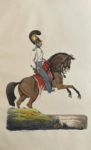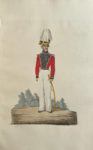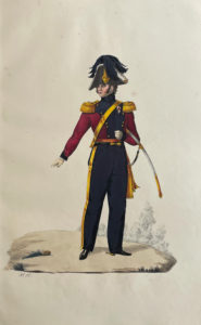 Altona, 1829. In-folio, en feuilles, couverture, chemise en demi-chagrin marine et étui (Devauchelle).Premier tirage de cette suite complète de 115 lithographies délicatement coloriées à l'époque, consacrée aux uniformes de la marine et de l'armée du Danemark, numérotées à la main et précédées de 5 ff. liminaires lithographiés en noir (titre, dédicace, avis, index et liste des souscripteurs).