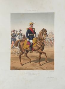 Paris, Dusacq & Cie, s.d. [1875]. In-folio, en feuilles, portefeuille imprimé de l'éditeur. Suite rare complète d'un titre et de 32 planches lithographiées en couleurs d'après Auguste de Moltzheim, colonel d'artillerie en retraite.