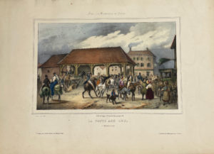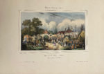 Paris, Vallée, Chaillou-Potrelle, 1830. In-4 oblong, en feuilles, chemise et couverture de livraison illustrées, emboîtage moderne en toile bleue. Suite complète de 12 lithographies originales de Victor Adam sur les fêtes publiques de Montmorency, Saint-Germain-en-Laye, la Villette, Auteuil, Vincennes, Beaugrenelle, Fontenay-aux-Roses, Sceaux, Chatenay, Bellevue (Meudon) et Saint-Cloud.