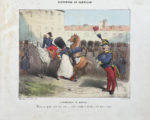On joint, du même : Turlupinades, contrariétés et autres amusemens négatifs. Paris, Aubert, s.d. [vers 1850]. In-4, cartonnage jaune de l'éditeur orné d'une lithographie en noir, dos renforcé de toile jaune. Album composé d'un titre et de 15 lithographies en épreuves coloriées et gommées. Cartonnage d'éditeur au dos et gardes renouvelés, quelques rousseurs.