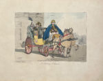 Rencontres de Paris et de Londres. Paris, Giraldon-Bovinet, 1826. In-4 oblong, monté sur onglets, bradel demi-percaline verte avec coins, pièce de titre rouge sur le premier plat, couverture de livraison (Reliure moderne). Premier tirage de cette suite complète d'un titre sur la couverture et de 7 lithographies coloriées. La planche Discussion orageuse est en rare épreuve d'artiste rehaussée de gouache, enrichie de remarques à la plume et signée de Monnier. L'épreuve, coupée au cadre, provient de la collection Charles Malherbe, avec estampille. Marie, 100-106.