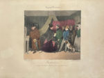 Paris, Giraldon-Bovinet ; Londres, Jones, 1828. 3 suites en un volume in-4 oblong, bradel demi-percaline verte avec coins, couverture (Reliure vers 1900).Rare réunion de trois suites en couleurs d'Henry Monnier :