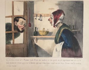 Paris, Aubert & Cie, s.d. [1840-1842]. In-4, percaline bleue, titre doré sur le plat supérieur, dos lisse muet (Reliure de l'époque).Premier tirage de cette suite complète de 30 lithographies satiriques de Jules Platier sur les mœurs et la psychologie des concierges parisiens.