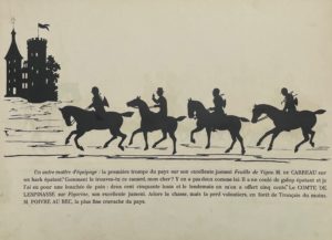 L'album est illustré de scènes de chasse à courre en ombres chinoises.
