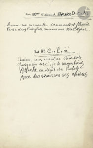 Guillaume APOLLINAIRE (1880-1918). 2 poèmes autographes, [1911] ; demi-page grand in-8 (au dos, en-tête et vignette de l’Hôtel zu den vier Jahreszeiten München).{CR}Sur Mme Edvard D.r.ks. Distique inédit inspiré par l’épouse du peintre...