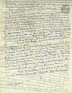 Louis ARAGON (1897-1982). L.A.S. « L. », Lundi soir 4 Décembre [1939], à Elsa Triolet ; 4 pages in-4.{CR}Longue lettre amoureuse d’Aragon soldat à Elsa.{CR}La nuit, près d’un feu de cheminée, Aragon écrit à Elsa... « Oh je voudrais...