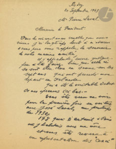 Antonin ARTAUD (1896-1948). L.A.S., Rodez 20 septembre 1943, au Président Pierre Laval ; 6 pages in-4.{CR}Extraordinaire lettre où Artaud raconte son voyage en Irlande et son internement. [La lettre n’a pas été envoyée ; elle fut...