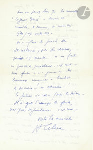 Louis-Ferdinand CÉLINE. L.A.S. « LF Céline », [Copenhague] 29 juillet [1947], à son ami Charles Deshayes à Lyon ; 3 pages in-fol., enveloppe.{CR}Sur son procès et les écrivains collaborateurs.{CR}Il approuve l’idée de faire appel à...
