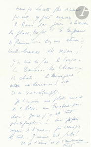 C’est parfait. Reine de la scène et des portes capitonnées ! J’apporte les situations – à toi le texte !... les répliques ! l’apothéose !... ou la guillotine ! […] J’applaudirai de toutes façons – pendu, décollé, ou triomphal... Je t’embrasse »…{CR}Le 25 [novembre]. « Ah ma chère Marie. Tout croule ! Le Commissaire du Gt Seltensperger est dessaisi de mon dossier... “Qu’est-ce qui m’a foutu un Fouquet Tinville mou pareil ! À vous Couthon ! Sautez moi sur ce dossier ! Et que ça saigne !...” à peu près le dialogue entre le Parquet et les “Hauts Lieux des Hurle-à-mort !” Ils ont passé mon affaire à un Commissaire coupeur de tête... un dur, un chrome ! un galvanique ! […] On m’a fait payer le duel Tixier, la fuite Scapini... tout ! Je suis déféré paraît-il de nouveau en Cour de Justice. Ils vont me foutre au moins 20 ans ! ou la totale ! sur un Dossier vide remarque ! sauf si on mobilise évidemment la solide phalange des faux témoins de la PP... ces vieux fonctionnaires du Crime… Je pourrais après ça bien sûr protester en “opuscule”, faire rigoler la galerie... C’est mince comme consolation. Si ton ami est bien placé comme il le dit... il verra ce qu’on peut faire... si on peut encore faire triompher une juste cause ! Rigolons ! Y a de l’épilepsie dans tout ça à tel point qu’aucun traitement je crois n’est possible. C’est affligeant »...{CR}Le 7 nov. 49. « Ah chère Marie chérie il était temps que tu m’écrives l’encre commence à geler par ici, j’étais en panne de te répondre ! Certes je vais écrire à Maître Doublet, s’il peut qq chose... mille grâces et gratitudes... Que l’on m’en a promis des choses !... Rien n’est advenu !... Depuis 7 ans que le Poteau m’attend... Poteau-sur-Seine – pour moi la Ville... la France... Et je suis né à Courbevoie tu le sais ! 1894... au mois de mai ma jolie... et grelotter à 47 ans ! en Baltique. Même que Lucette plus vicieuse que moi y prend encore 2 bains par jour – à travers la glace, trésor ! Le tempérament des femmes m’a toujours étonné – Quel brasier là-dedans ! J’ai tout tu sais, le Cirque – La Danseuse – la Chienne – 12 chats... la Ménagerie ! même un hérisson ! et 30 ou 40 mésanges »...{CR}Le 2 [décembre]. « Chère Marie, bien sûr, je suis tout à fait de ton avis, il faudrait que je puisse remercier Tixier et Naud qui ne peuvent plus m’aider en rien, au contraire, dans les circonstances ! Cette bonne évidence ! Je voudrais tout à fait bien sûr que ton avocat prenne mon dossier en main. Je connais ton génie non seulement d’artiste mais de la vie ! Je te suis aveuglément. Mais là comment sans inexcusable muflerie signifier à ces deux défenseurs, parfaitement désintéressés, que voudrais bien m’assurer désormais des soins de Me... ? […] j’aimerais que cela se fasse sans heurt »... Mikkelsen (son avocat danois) ira voir Marie Bell : « Mais là aussi je suis horriblement gêné, empoté, contraint.. Je n’ai aucune action sur lui. Tu t’en doutes ! Dans la misère tu sais il faut être d’une délicatesse infinie. On ne vous passe rien. Mais je t’assure que je fais l’impossible pour qu’il reprenne le train, saute (!) te voir,... et agisse. Si je ne puis le décider alors tant pis j’écrirai directement à Tixier que c’est fini... que j’ai demandé à Me... de bien vouloir m’aider »….{CR}Le 27 [décembre]. « Ma chérie je t’envoie des bons vœux pour 50 ! les meilleurs du fond du cœur ! Et j ‘espère que tu pries pour moi ! C’est grand besoin ! A l’heure où tu recevras cette lettre, ils m’auront déjà traité plus bas que terre ! Ils trouvent pas beaucoup les motifs ! C’est pour ça qu’ils se marrent bien ! J’ai le “petit qqchose” qui plait aux bourreaux ! et aux bourriques ! Ils me veulent ! J’ai le “flic appeal”... C’est pas encore Thermidor ! Toi qu’étais si belle en costume ! Ah que j’en ai perdu de l’amour, sans toi ! et puis l’honneur et puis la tête ! Tout y passera ! Tout y passe ! Mais je veux pas être montrougisé ! Ça les emmerde ! mort aux vaches ! 14 a suffi question feux ! »…{CR}On joint un « Projet de lettre pour Céline » dicté par Marie Bell, avec le double dactylographié de cette lettre (15 novembre 1949) et le double d’une autre lettre (26 novembre 1949), sur l’intervention de Maître Doublet dans le procès de Céline ; Marie Bell lui suggère de renvoyer ses deux avocats.{CR}Lettres à Marie Bell (Du Lérot), nos 13, 14, 15, 16, 17 ; et 14 bis et 15 bis.