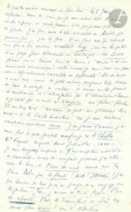avant tout le mec archi régulier et archi sérieux – donc que je veux pas te dorer la pilule. J’ai plus envie d’être accablé de boulot, je pourrais plus, plus la force. Il me faut une ½ retraite – une place de médecin assistant logé dans un hôpital d’un pays genre Normandie ou Bretagne – avec Lucette – pénard qui me laisse bien des heures à “œuvrer” sur mon manuscrit romanesque. Voilà comme je suis – donc un sacré con – difficilement casable et piffrable ! »… Un place de médecin de port, à la santé maritime, lui plairait bien ; il a l’examen nécessaire : « j’ai même fait en cette qualité naufrage sur le Chella, Cie Paquet, torpillé devant Gibraltar, 1940 ». Il y a le problème du transfert des fonds, et il est vital que Lucette soit examinée par un chirurgien à Paris. Il lui faudrait une place modeste, mais très agréable : « c’est l’écrivain illustre qu’ils reçoivent plus que le médecin, mais illustre ». Il va envoyer les animaux par avion à Menton chez ses beaux-parents ; détails sur Pirazzoli, le beau-père de Lucette… « Ici j’ai à faire à un damné coquin le Mikkelsen – l’amnistie est tombée sur lui en sacré tour de bâton ! Comment qu’il va me restituer ce qu’il me doit ? ce grand bienfaiteur ? tous comptes faits ? Oh la la c’est ardu. Il a déjà fait 4 faillites ! et tartufe – et chiard et cruel. Le Danois c’est le boche sans les vertus militaires – c’est tout te dire ! finassieren, chicanieren etc. En attendant on bouffe à peine. Rien ne pousse ici – pas de légumes, trop froid. La viande une fois par semaine et hors de prix est mauvaise. Les œufs sans goût – le poisson sans goût heureusement on est pas difficile. Mais le hareng fumé au flocon d’avoine – j’en veux plus – les chats non plus. […] Tixier-Vignancourt est engagé dans l’épilepsie électorale de je ne sais quelles Pyrénées. Mais il a réalisé avec moi un miracle ! une monstruosité ! »…{CR}On joint une petite L.A.S., Klaskovgaard le 8 (demi-page in-fol.) : « Cher vieux Je m’attendais à recevoir de tes nouvelles d’un autre bled argentin… tu me disais ton désir d’aller tâter l’agriculture »…
