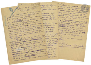 Roland DORGELÈS (1886-1973). Manuscrit autographe signé, Profession de foi d’un journaliste ; 12 pages in-8 avec ratures et corrections.{CR}Dorgelès raconte avec esprit ses débuts de journaliste au Journal ; il explique ce qu’est pour lui...