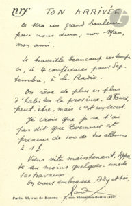 Paul ELUARD (1895-1952). L.A.S. « Paul », [1935 ?], à Man Ray ; 1 page in-8 à en-tête nrf. « TON ARRIVÉE ce sera un grand bonheur pour nous deux, mon Man, mon ami. Je travaille beaucoup ces temps-ci, à 4 conférences pour Septembre, à...