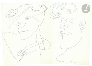 redis, sans aucune pudeur, que votre article ma fait un très grand plaisir. Et même (mais ne vous mettez pas en colère) je me demande si vous n’avez pas voulu un peu vous foutre de moi ? Vous me comprenez ? On n’a pas l’habitude de me faire des éloges pareils »...{CR}On joint un dossier de 6 dessins à la plume attribués à Jean Genet, caricatures.