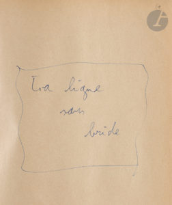 Michel LEIRIS (1901-1990). Manuscrit autographe, La ligne sans bride, [1971] ; sur 47 pages petit in-4, couvertures orange conservées, le tout monté sur onglets et relié en un vol. dos de box orange et plats de toile orange (Leroux,...