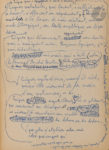 1980).{CR}Manuscrit de travail de cette préface à Massacres et autres dessins du peintre surréaliste André MASSON (Hermann, 1971).{CR}Le manuscrit est écrit à l’encre bleue, au dos de feuillets d’épreuve d’Ubu cocu d’Alfred Jarry.{CR}Remarquable étude sur le dessin, et sur l’art d’André Masson (1896-1987), sous forme de notes, souvent poétiques. {CR}Leiris commence : « Premier problème – irrésolu et peut-être insoluble – de la critique d’art : déterminer le point où l’écriture se fait calligraphie. Pourquoi X est-il calligraphe alors que Y ne l’est pas ? […] Problème, quant aux dessins d’André Masson : pourquoi la ligne y est-elle si vivante, et est-elle beaucoup plus qu’une ligne de “calligraphie” ? En quoi, précisément, se distingue-t-elle de celle d’autres dessinateurs prestigieux ? »…{CR}À propos de ces notes, Leiris écrit en conclusion : « Ce qui leur manque le plus, je ne le sais que trop ! c’est d’avoir été écrites d’une plume aiguë comme un regard d’oiseau rapace et encrée de sève ou de sang. Ainsi jetées sur le papier, chacune en un unique élan, l’imitation aurait été parfaite. Se dire d’ailleurs qu’il y a dans ce que je dis là une contradiction dans les termes : parler de Masson comme il dessine eût exigé une table rase, un nettoyage par le vide à quoi n’aurait pas échappé l’intention aussi de parler de ses dessins. Se dire qu’il serait bien vain de dessiner ou de peindre, si le critique avec ses phrases, calquées sur le modèle ou non, pouvait percer l’énigme. Car, s’il est un art qui compte, c’est celui qui – sans que l’artiste l’ait cherché – est une critique de la critique d’art et une critique assez vigoureuse pour clore le bec de celle-ci ».