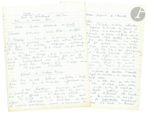 Jean-Paul SARTRE (1905-1980). Manuscrit autographe, [Sur la Révolution française] ; sur 39 pages in-4 d’un bloc Diane avec sa couverture d’origine.{CR}Manuscrit inédit pour un ouvrage sur la Révolution Française.{CR}C’est une étude...