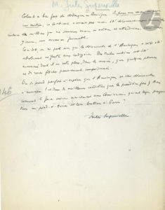 Jules SUPERVIELLE (1884-1960). Manuscrit autographe signé ; demi-page in-4 (marques typographiques au crayon bleu).{CR}Réponse à une enquête sur Christophe Colomb et l’Amérique.{CR} « Colomb a bien fait de débarquer en Amérique. Si […]...