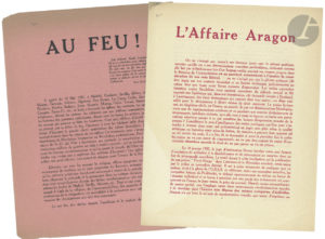 C. Goemans, P. Nougé.{CR}Prière d’insérer pour La Femme visible de Salvador Dali, [novembre ? 1930], par A. Breton et P. Eluard.{CR}Au Feu !, [mai 1931, sur papier rose], par M. Alexandre, Aragon, A. Breton, P. Eluard, R. Char, R. Crevel, P. Eluard, G. Malkine, B. Péret, G. Sadoul, Y. Tanguy, A. Thirion, P. Unik.{CR}Ne visitez pas l’Exposition Coloniale, [mai 1931], par M. Alexandre, Aragon, A. Breton, P. Eluard, R. Char, R. Crevel, P. Eluard, G. Malkine, B. Péret, G. Sadoul, Y. Tanguy, A. Thirion, P. Unik.{CR}Premier bilan de l’Exposition Coloniale, 3 juillet 1931, par M. Alexandre, Aragon, A. Breton, R. Char, R. Crevel, P. Eluard, G. Malkine, B. Péret, G. Sadoul, Y. Tanguy, A. Thirion, P. Unik.{CR}L’Affaire Aragon, [janvier 132], par M. Alexandre, A. Breton, R. Char, R. Crevel, P. Eluard, G. Malkine, P. Massot, B. Péret, G. Sadoul, Y. Tanguy, A. Thirion, P. Unik.{CR}Autour d’un poème [d’Aragon], 5 avril 1932, par M. Alexandre et P. Unik.{CR}La mobilisation contre la guerre n’est pas la paix, [juin 1933], par A. Breton, R. Caillois, R. Char, R. Crevel, P. Eluard,J.M. Monnerot, B. Péret, G. Rosey, Y. Tanguy, A. Thirion.{CR}Quelques œuvres de Picabia (époque dada 1915-1925), pour une exposition en 1951, par A. Breton, J.H. Lévesque, P. de Massot.