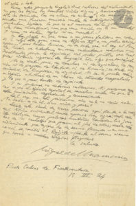 Miguel de UNAMUNO (1864-1936). LA.S., Fuerteventura 15 mars 1924, au directeur du journal Le Quotidien ; 2 pages in-4 ; en espagnol (traduction jointe).{CR}Violent réquisitoire contre la dictature en Espagne, après sa déportation aux...