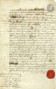 CHARLES X (1757-1836). P.S. « Charles Philippe », Londres 3 septembre 1814, ; 2 pages in-fol., sceau de cire rouge aux armes ; en anglais.{CR} Acte fiduciaire à propos d’un bail du 31 janvier 1804 entre d’une part Sharon Parner et Anthony...