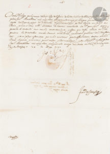 ESPAGNE. PHILIPPE II (1527-1598). L.S. « Yo el Rey », Aranjuez 24 mai 1590, au cardinal Montelveri ; demi-page in-fol., adresse avec sceau aux armes sous papier (petit trou de ver au niveau de la signature) ; en espagnol.{CR}Il le remercie de...
