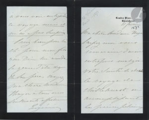 d’être venue aux obsèques... « En accomplissant le pieux pèlerinage pour prier dans la petite église où l’Empereur repose en dépot, vous avez voulu continuer une tradition de famille, votre nom s’est associé aujourd’hui comme autrefois avec le nôtre. Mon fils a désiré que je vous remercie en son nom, car il en a été vivement touché. [...] Priez bien pour lui et pour mon fils que Dieu lui accorde la grace d’être digne de son père »...