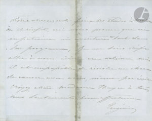 d’Hortense, le général Henry Bertrand... « Mon fils a été bien heureux du souvenir précieux que le général lui a donné car il a été élevé dans le culte du passé ». Eugénie explique ses réserves devant les propositions des bonapartistes : « les impatiences n’ont pas voix au chapitre [...] nous ménageons et aidons le Mal [Mac-Mahon, Président de la République] dès qu’il ne s’agit pas pour nous d’une question de Principe. [...] Il faut être franc vis -à-vis du pays pour qu’il juge en connaissance de cause. [...] au sujet du suff[rage] universel, je crois qu’il faut qu’il soit dirigé, mais le mutiler me semble une tâche impossible qui donnerait des résultats contraires à ceux que l’on attend. Ce qu’il y a de pire en France c’est la petite bourgeoisie, rencunière athée, constamment aigrie qui veut être tout, sans avoir une seule vertu. Quelque mutilation qu’on veuille faire c’est au dessous d’elle qu’on coupera le nœud, et on conservera ainsi la partie dangereuse et mauvaise. [...] ce n’est pas nous qui pouvons désirer de créer des difficultés au Maréchal, au contraire ; malgré que souvent il a comblé les Pces Orléans et a été un peu dur pour nous, mais nous connaissons trop sa nature loyale pour ne pas savoir que s’il se laisse entrainer par des personnes qui l’entourent, l’esprit de justice reprend son cours après réflexion. Mon fils travaille tant qu’il peut et il désire vivement finir ses études à Woolwich où il réussit, ceci vous prouve que ni impatience ni aventures ne sont dans son programme »...