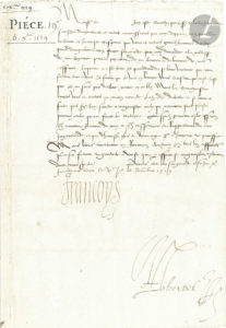 FRANÇOIS Ier (1494-1547). L.S. « Francoys », Fontainebleau 5 décembre 1529, à un seigneur (le nom est resté en blanc) ; 1 page in-fol., contresignée par Florimond Robertet.{CR}Importante pièce relative à la rançon de François Ier...
