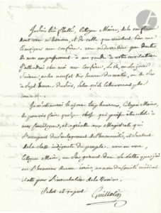 Joseph-Ignace GUILLOTIN (1738-1814) médecin et député, promoteur de la guillotine. L.A.S., Paris 10 ventôse IX (1er mars 1801), au Citoyen Maire du 2e arrondissement ; 2 pages in-4 (curieux filigrane avec une charrue et des...