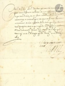 vous desirez de me faire entendre ». Elle se contente ici de lui confirmer « les asseurances de mon affection, & le desir que jay de veoir prosperer tout ce qui regarde votre fortune »… Elle ajoute de sa main : « Vostre bien bone amie Marie ».