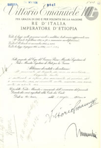 Benito MUSSOLINI (1883-1945) et VICTOR-EMMANUEL III (1869-1947). P.S. par les deux, San Rossore 1er novembre 1938 ; 1 page in-fol. en partie impr. à en-tête de Vittorio Emanuele III…{CR}Décret accordant la retraite au général de brigade...