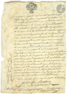 Jeanne de Sainte Clotilde, au monastère de la Trinité d’Autun (1705).{CR}On joint un billet d’aumône pour les pauvres (Paris, 1791), et un Prospectus d’éducation pour les jeunes personnes… (Sens 1804).