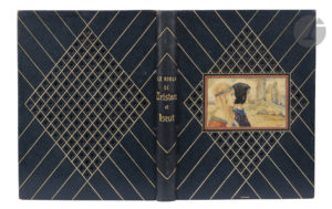 Bel exemplaire en reliure de Lehaye, ornée sur le premier plat d’une peinture sur parchemin représentant Tristan et Iseut de profil, signée par le relieur.