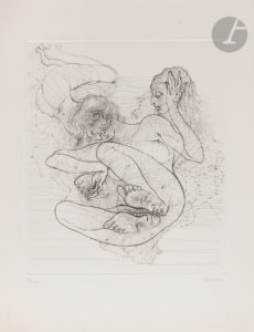 BELLMER (Hans). — Les dessins de Hans Bellmer. — Paris : Denoël [Bellmer], [1966]. — In-4, 319 x 246 : (4 ff. premier blanc), 109 pp., (3 ff.), En feuilles, chemise et étui de l’éditeur.