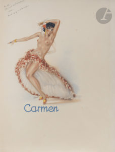 MÉRIMÉE (Prosper) - CHIMOT (Édouard). — Carmen suivi de La Course de taureaux. — S.l. : Deux-Rives, [1952]. — In-4, 326 x 255 : frontispice, 164 pp., (2 ff. dernier blanc), 13 planches, couverture illustrée.