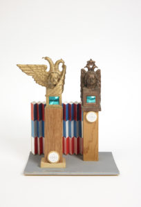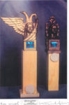 Réalisé en 1996, étiquette sur chaque maquette. L’œuvre comprend : deux sculptures en volume (bois et matériaux synthétiques), 56 x 13 x 86 cm et 56 x 11 x 86 cm ; monument de Pierre le Grand (bois et matériaux synthétiques), 25 x 16 x 18 cm. Nous y joignons deux photographies de l’œuvre, 150 x 215 mm. Provenance : collection particulière, Pays-Bas. КОМАР Виталий (1943) МЕЛАМИД Александр (1945) Трехцветные мосты и просыпающийся орел, 1996 Композиция по случаю 300-летия визита Петра Iго в Голландию. Создана в 1996 году. Работа включает: два объемных макета мостов (дерево, синтетические материалы), 56 x 13 x 86 см. и 56 x 11 x 86 см.; памятник Петру I (дерево, синтетические материалы), 25 x 16 x 18 см. Прилагаем две фотографии макетов, 150 х 215 мм. Провенанс: частная коллекция, Голландия.
