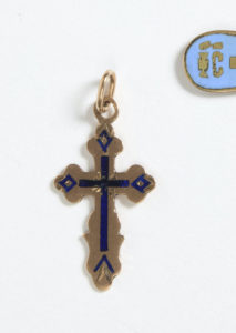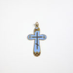 CROIX Or et émail bleu Poinçons : ПК, tête de femme et 56 3 х 1,2 cm, 1,2 g, Russie, début XXe siècle КРЕСТ Золото, синяя эмаль Клейма: ПК, голова в кокошнике и 56 3 х 1,2 см., 1,2 гр.,...