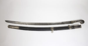 cuir Empire ottoman, fin XIXe - début XXe siècles 94,5 cm, 80 cm (lame), B.E. ШАШКА кавказского образца с ножнами Родные ножны украшены серебряными обоймицами и чернью. Рукоять украшена чернью, на лезвии гравировка с волком и полумесяцем, подпись «ИОЛНА» Серебро, сталь, чернь, дерево, кожа Османская империя, конец XIXго – начало ХХго века. 94,5 см. (общая длина), 80 см. (длина лезвия). Хор.сост.