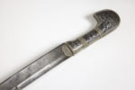 RARE CHACHKA de type caucasien Avec son fourreau d’origine décoré d’argent niellé. La poignée est en argent niellé. Un loup et une image de demi-lune sont gravés sur la lame, la lame est signée « IOLNA ». Argent, acier, tchern, bois,...