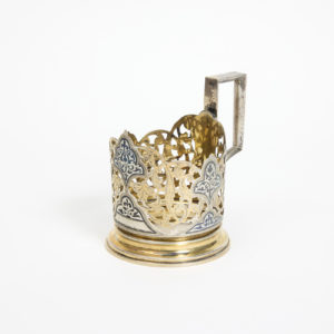 PORTE-VERRE à thé Argent, vermeil, tchern Poinçons : étoile avec 875 9,5 х 7,5 cm, 82 g, Russie, période soviétique ПОДСТАКАННИК Серебро, золочение, чернь Клейма: звезда и 875 9,5 х 7,5 см., 82...