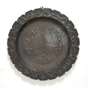 JEUX OLIMPIQUE, 1980 Assiette commémorative Bronze D : 29,5 cm, A.B.E. ОЛИМПИАДА, 1980 Памятная тарелка Бронза Д: 29,5 см., общ.хор.сост.