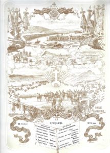 ПРОГРАММА Хоры музыки 28 ноября 1878 г. Хор музыка Л.Гв. Преображенского полка и хор музыка Л.Гв. Саперного батальона. Оформление на тему заключения Сен-Стефанского мирного договора (19 февраля 1878 г.). Хромолитография, 31,5 х 23,5 см., хор.сост.