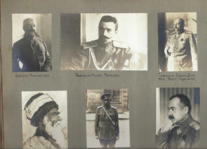 blanche en 1918-1919. Différents formats, entre 35 x 95 mm et 87 x 135 mm. Comprenant : photos d'églises et de sanctuaires profanés par les bolcheviks, nombreuses photos de victimes des bolcheviques sur le Don, à Kiev et à Kharkov (scènes d'identification, charniers, résultats de tortures), portraits de généraux de l'Armée de volontaires (Vrangel, Denikine, Kutepov, Shkuro, Drozdovsky, Kornilov, Ruzsky, Radko-Dmitriev, Pokrovsky, Semiletov, Mamontov, Shatilov, Kaledin, Erdely, Guselshchikov, Irmanov, Dragomirov et autres), funérailles du général Drozdovskiy, photos des campagnes des régiments Markovskiy et Drozdovskiy, division de cavalerie « Dikaya divisia », débarquement des régiments et plusieurs scènes dans les tranchées, photos de matériel militaire (train blindé du général Shkuro, matériel des bolcheviks, aérodrome de Ekaterinodar, wagons sanitaires, etc.), funérailles des soldats tombés au combat, scènes de l'entrée de l'armée à Kharkov et à Tsaritsyn. Ce recueil présente un intérêt historique. [УЖАСЫ ГРАЖДАНСКОЙ ВОЙНЫ] Уникальная подборка из 168и репортажных фотографий, сделанных участником гражданской войны в рядах Добровольческой армии на территории Харьковской области, Киева и по мере продвижения армии в 1918-1919 гг. Снимки разного размера от 35 х 95 мм. до 87 х 135 мм. Включает: фото оскверненных большевиками церквей и святынь, многочисленные фото большевистских жертв на Дону, в Киеве и Харькове (сцены опознания, братские могилы, пыточные), портреты генералов Добровольческой армии (П. Врангель, А. Деникин, А. Кутепов, А. Шкуро, М. Дроздовский, Л. Корнилов, Н. Рузский, Радко-Дмитриев, В. Покровский, Э. Семилетов, К. Мамонтов, П. Шатилов, А. Каледин, И. Эрдели, А. Гусельщиков, В. Ирманов, А. Драгомиров и др.), похороны ген. М. Дроздовского, фото из походов Марковского и Дроздовского полков, туземной конной дивизии, высадки полков и сцены в окопах, фото военной техники (бронепоезд ген.Шкуро, отбитая у большевиков техника, аэродром в Екатеринодаре, санитарные вагоны и др.), похороны павших в боях, сцены вступления Добр.Армии в Харьков и Царицын., фото плакатов Освага. Представленная подборка представляет безусловный исторический и коллекционный интерес.