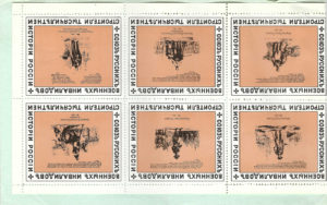 Франции. С изображениями русских исторических событий по рисунками В.П. Верещагина. Всего 24 марки в четырех цветах (по 6 штук в каждой серии). Общ.хор.сост.