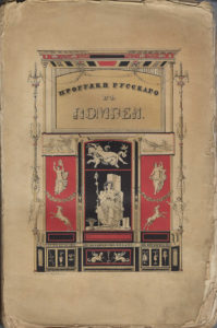 Санктпетербург, 1843 г. 218 стр., 27 х 17 см., в сост. Отсутствует корешок и задняя обложка, верхняя крышка обложки сохранение (в сост.), блок в сост. (следы влаги и плесени, надрывы, заломы). Сочинение русского писателя, общественного деятеля А.И. Левшина (1798-1879), в котором впервые на русском языке описаны помпейские древности.